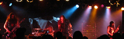 Goatwhore live was power personified. Louis R. Falgoust II (can I just call him "Louis?") was the perfect frontman. Intense, imposing, animated and, above all, evil as all hell. I know they opened with the Carving... title track but am not familiar enough with their catalogue to have known from where they drew the rest of the set. Regardless, it was impossible to not be drawn in and fully engaged by their performance. The band remained stoic throughout and Louis lurked around the stage while Sammy Duet provided an insane amount of sound from the band's sole guitar. Like Immolation, Goatwhore defined themselves for me as one of those bands whose recorded work is easily trumped by their live show. And all this said, I still made a promise to myself to check out any other records they may have out there.